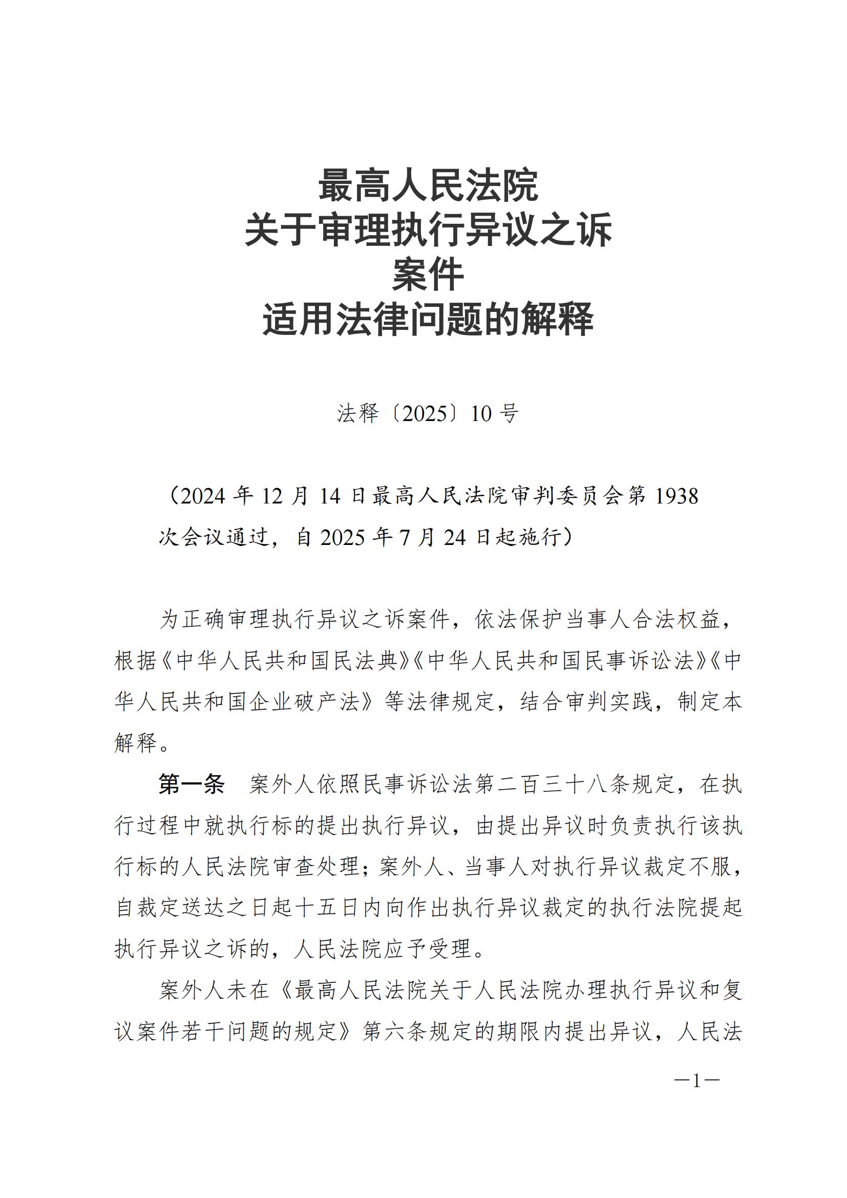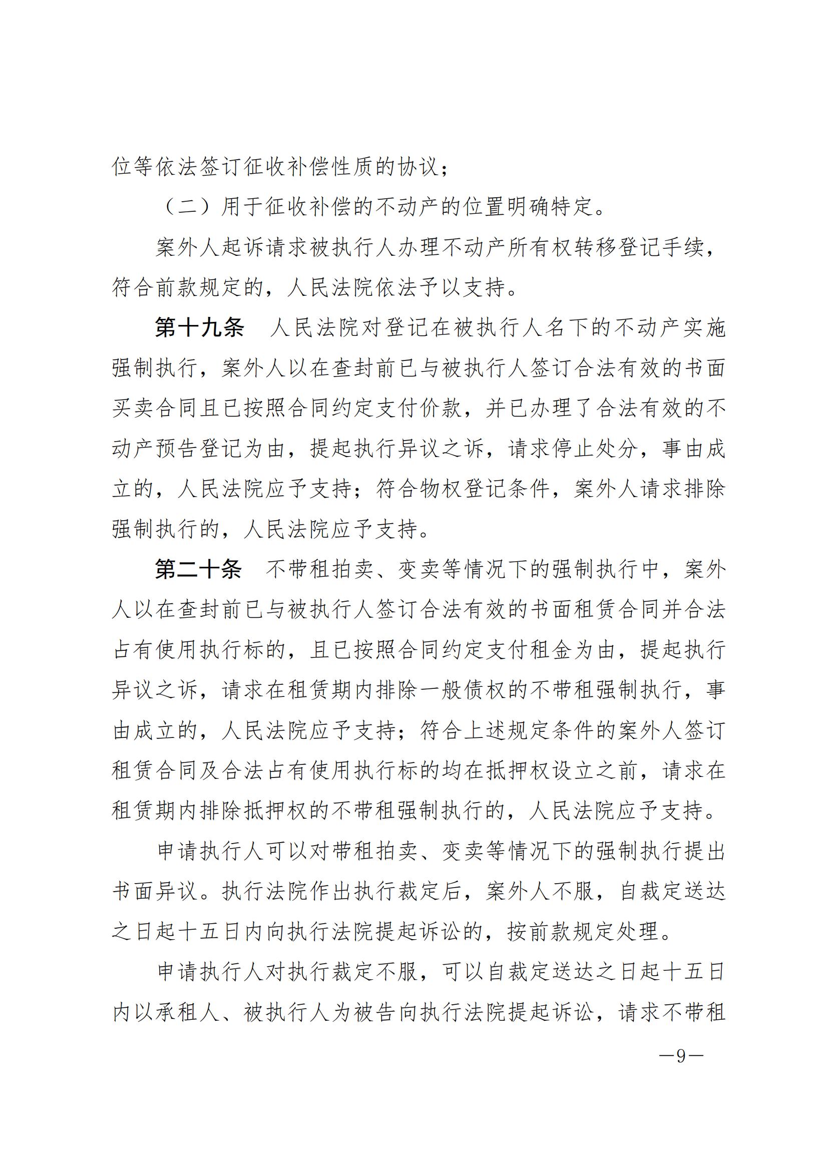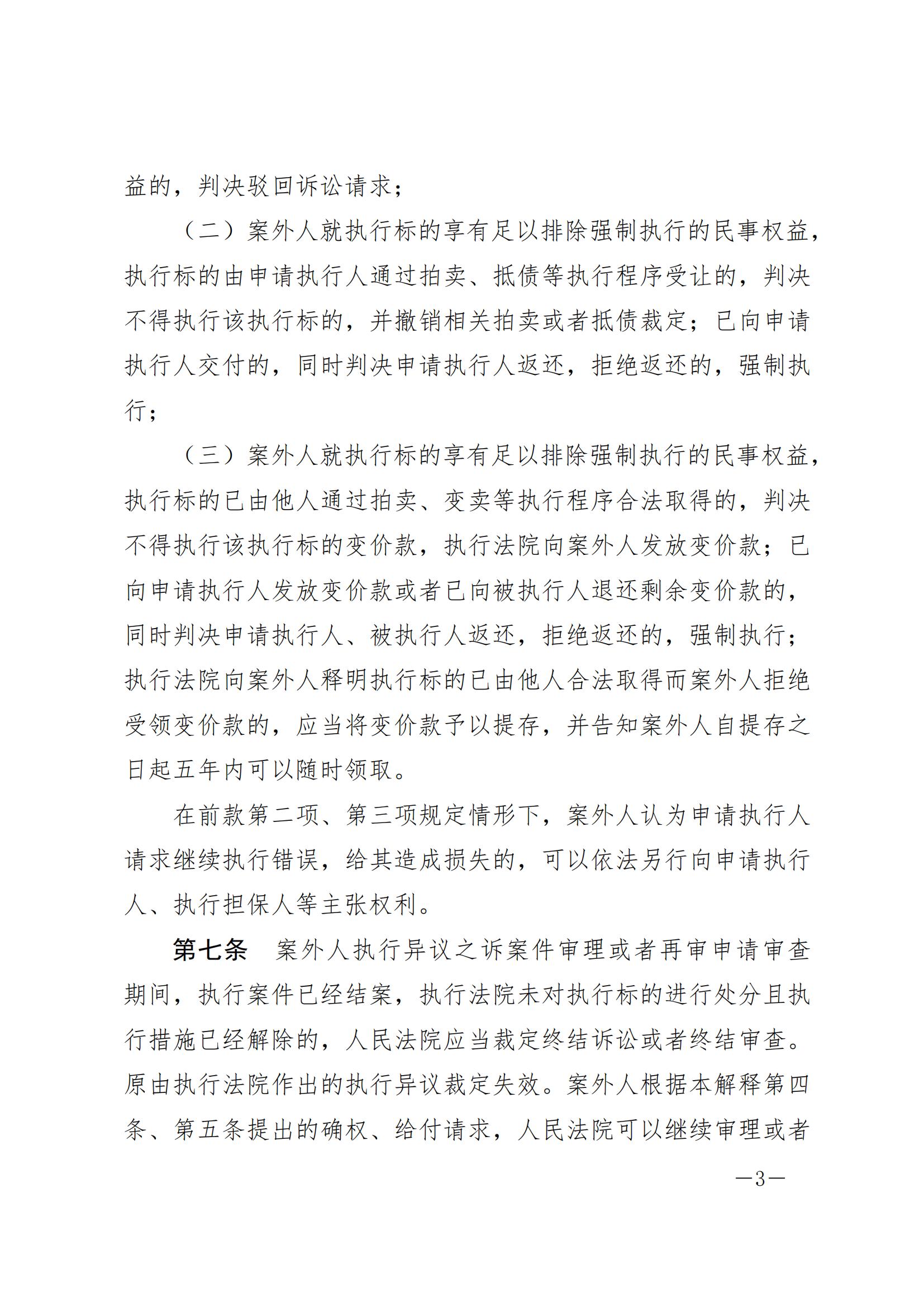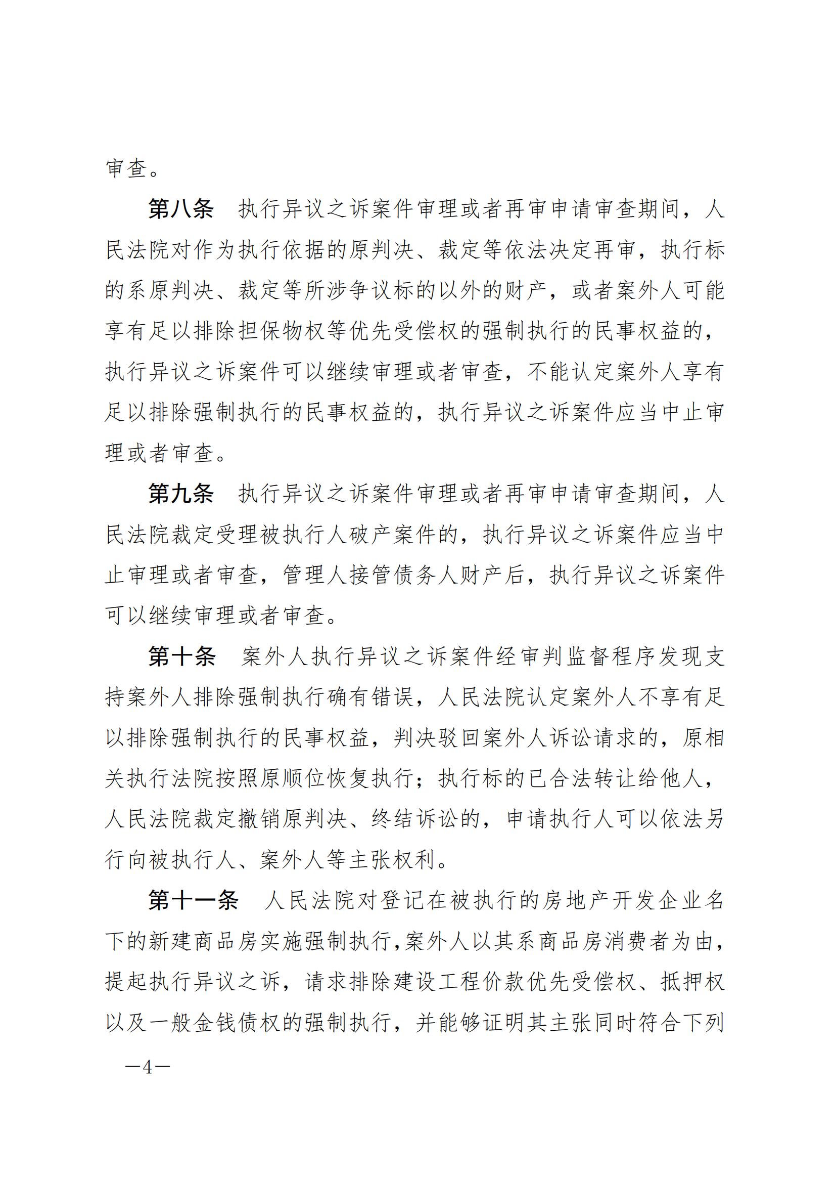 最高人民法院关于审理执行异议之诉案件适用法律问题的解释