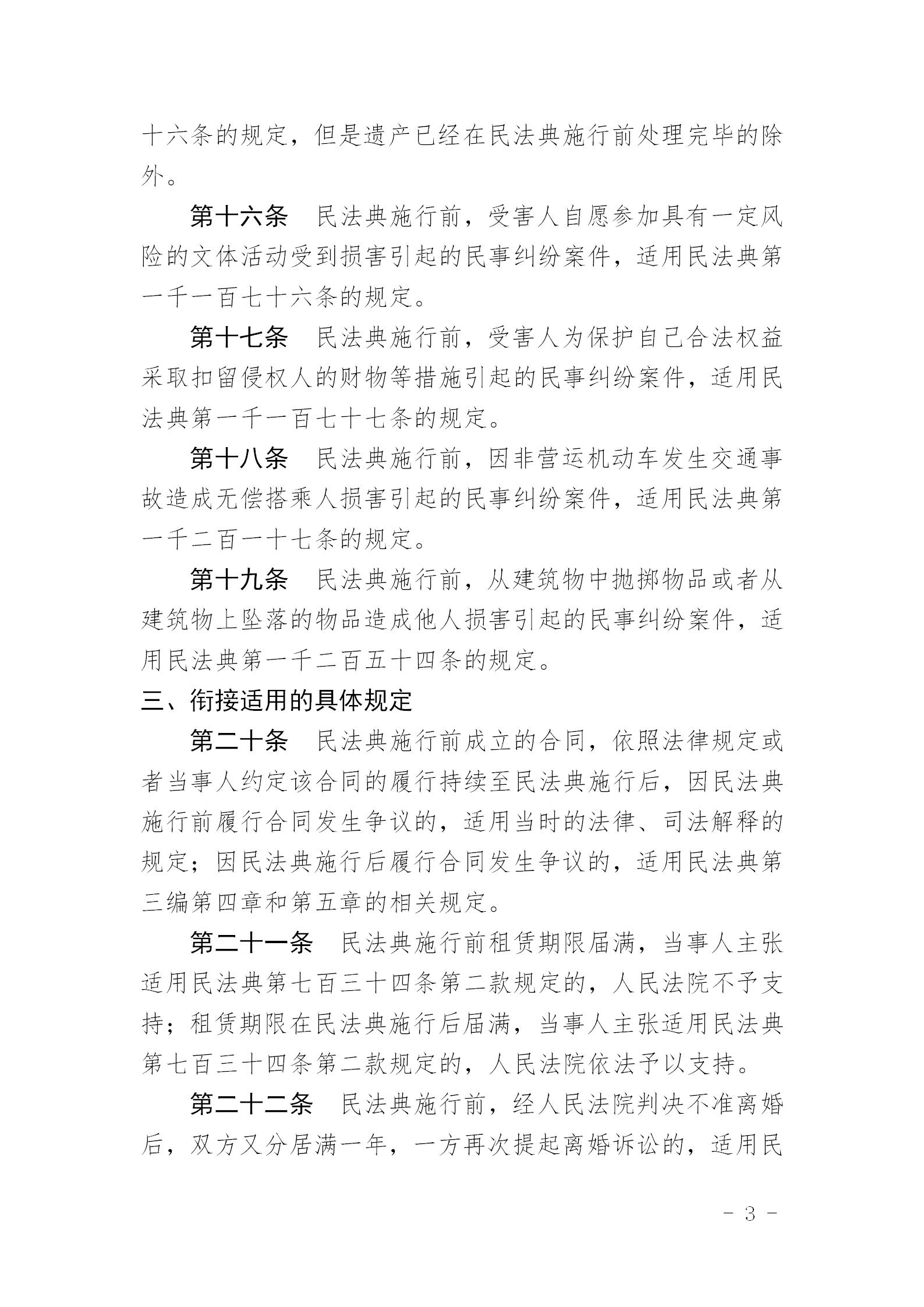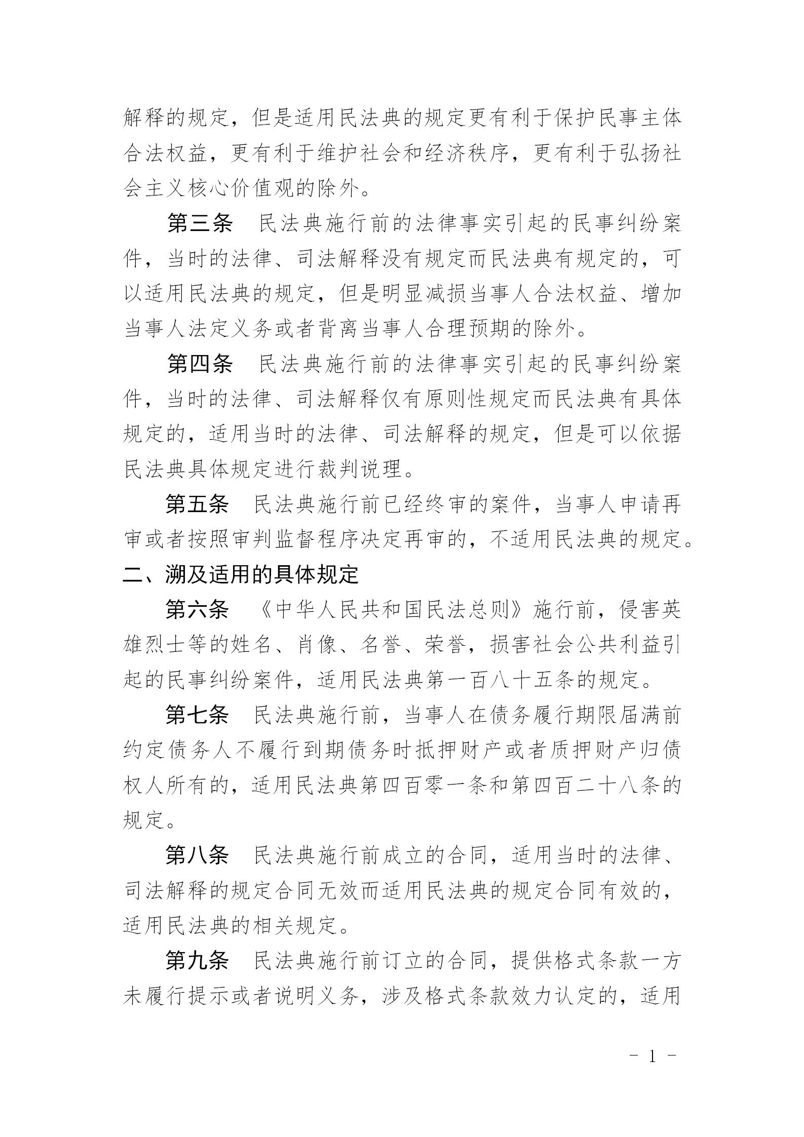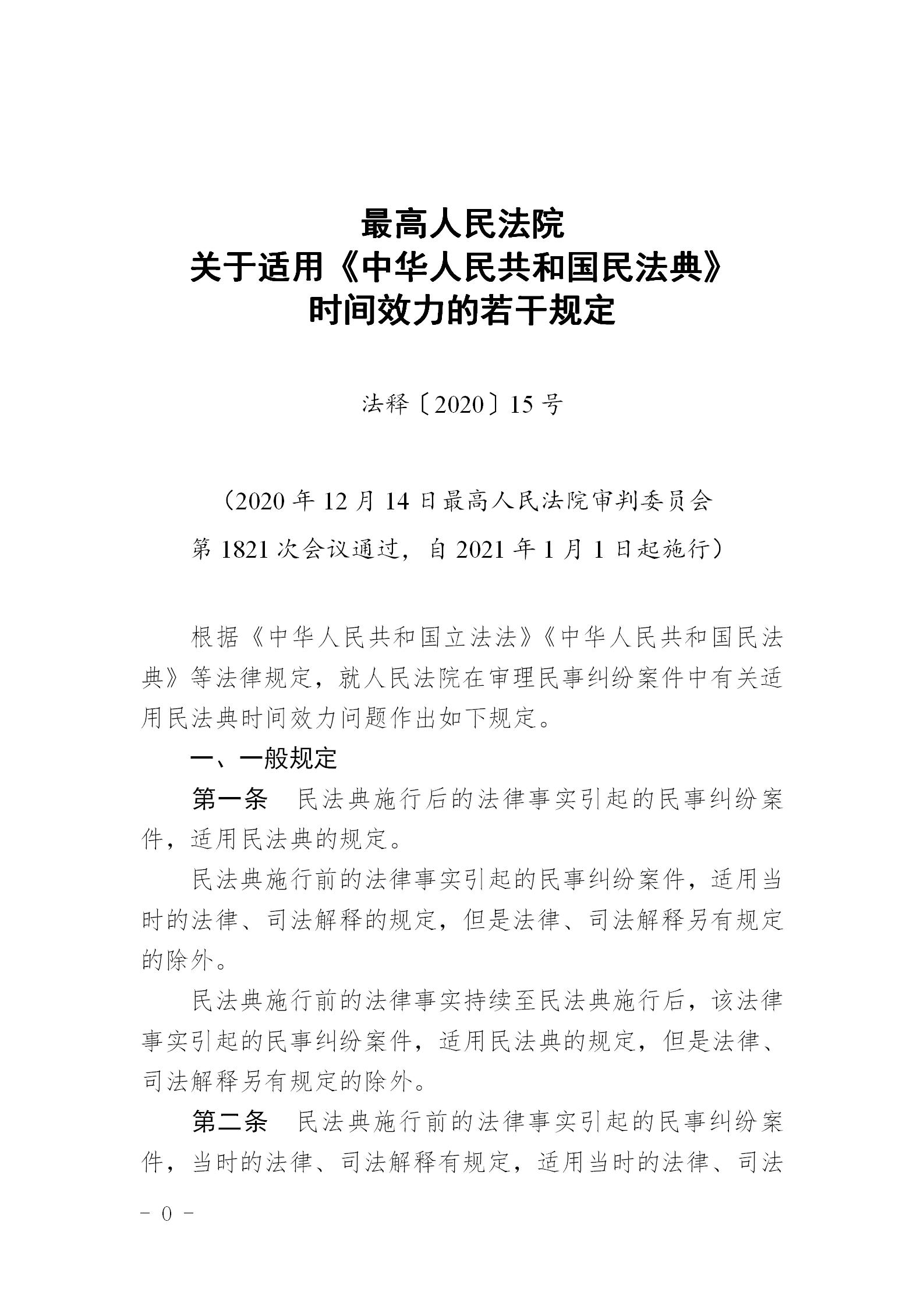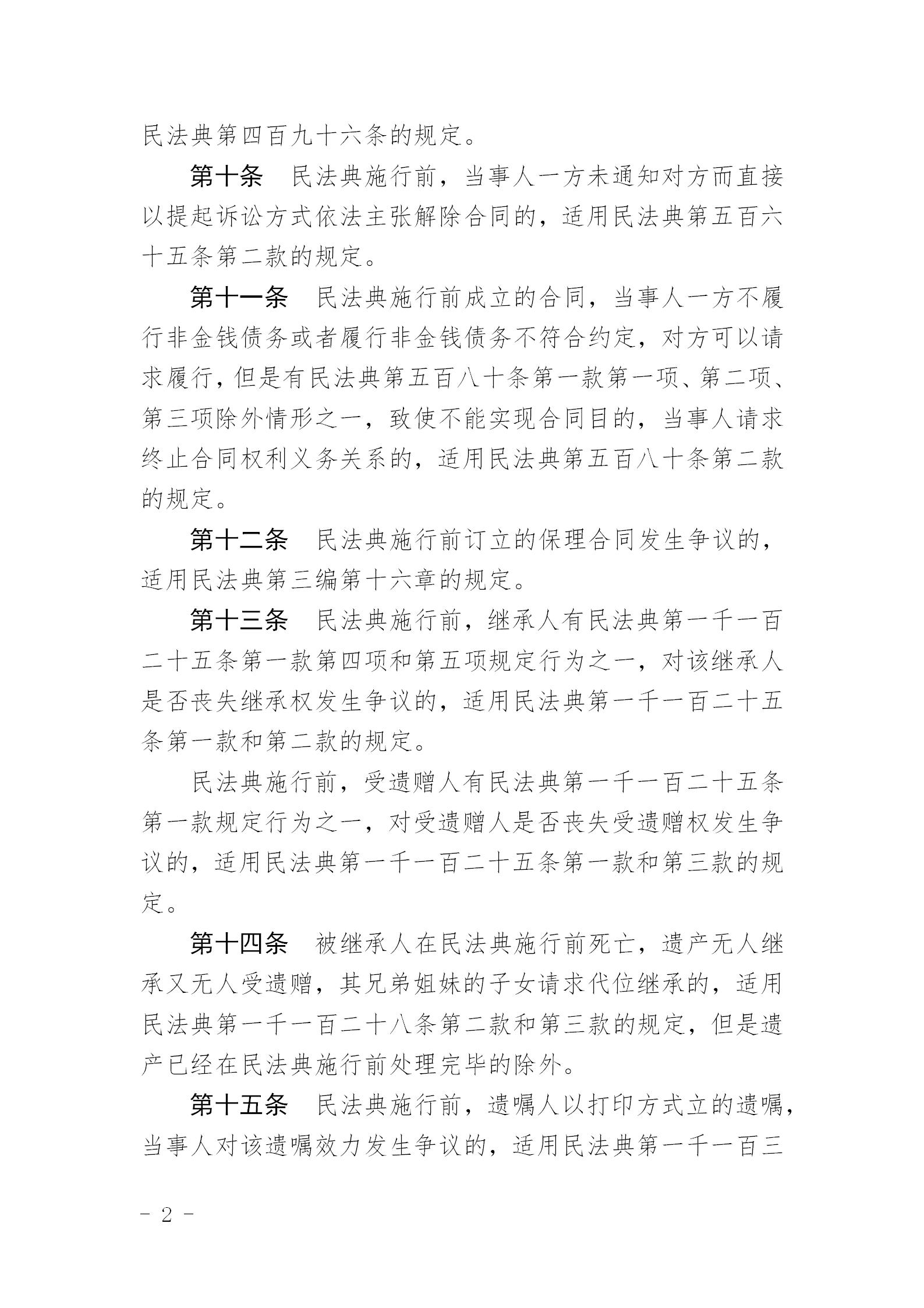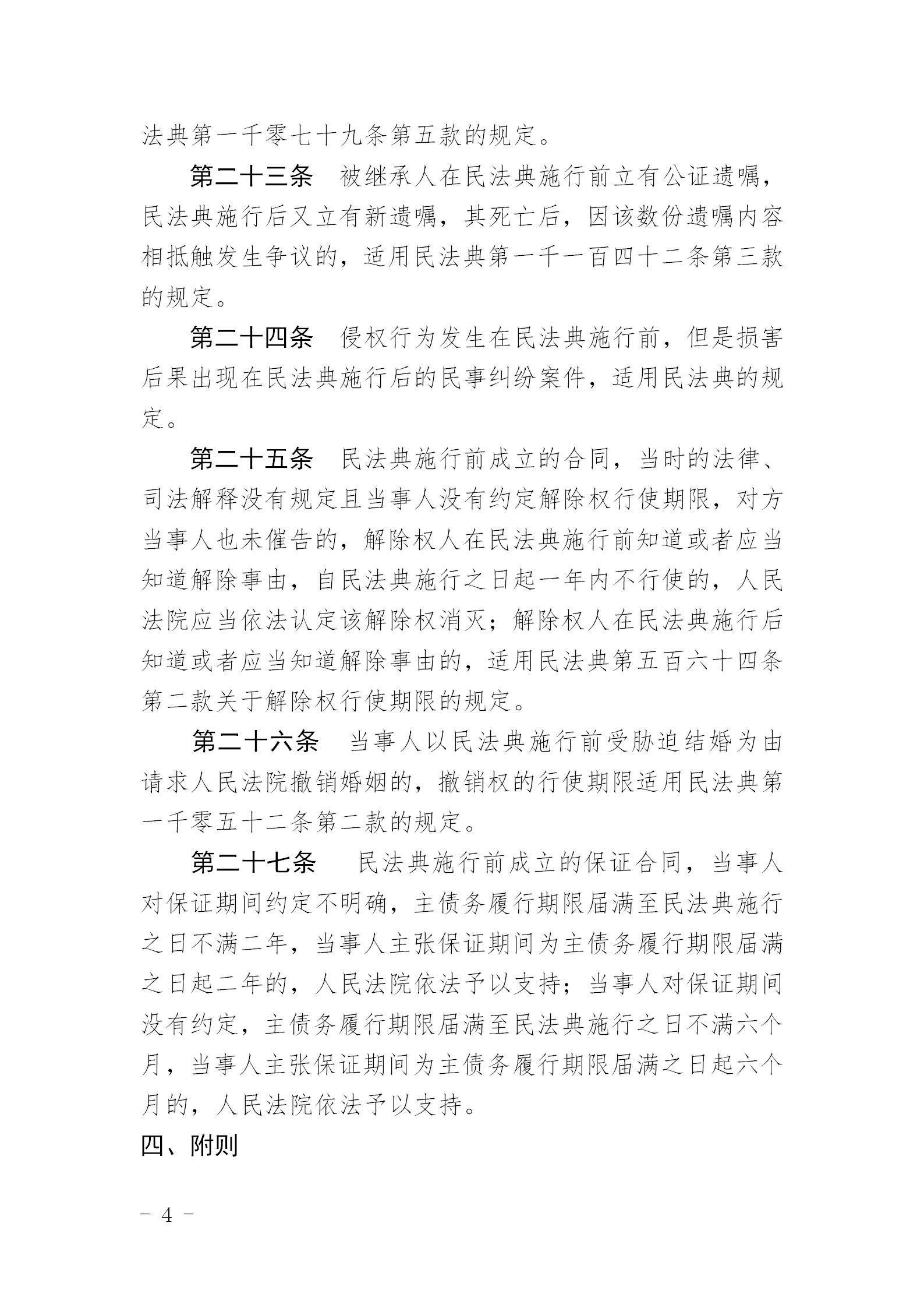 最高人民法院关于适用《中华人民共和国民法典》时间效力的若干规定