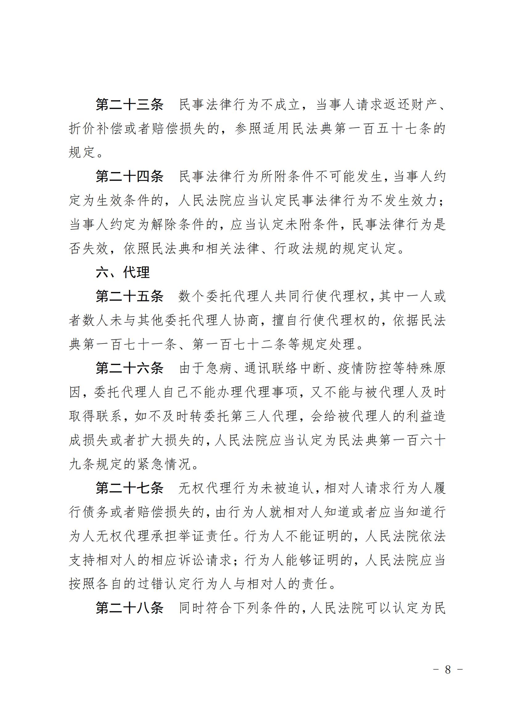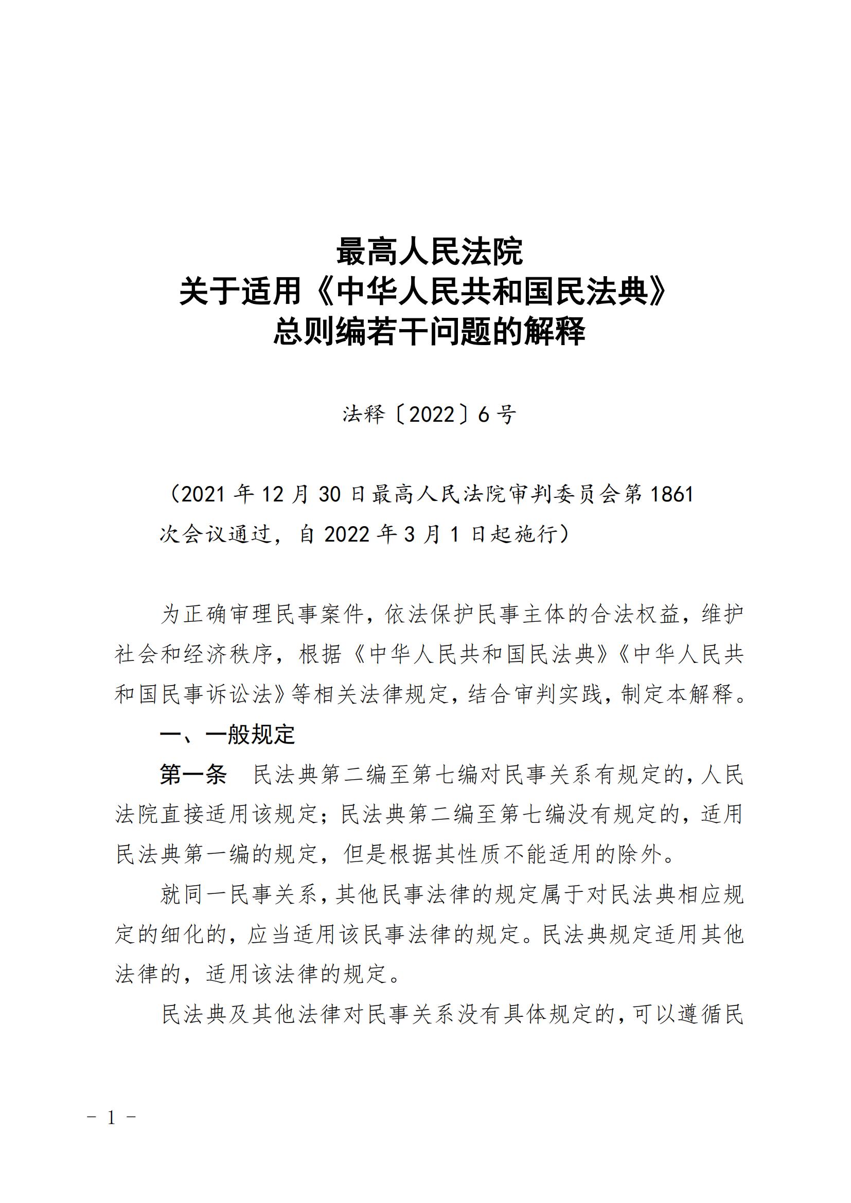 最高人民法院关于适用《中华人民共和国民法典》总则编若干问题的解释